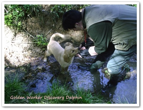 Heute war meine Schwester zu Besuch. Bis heute wusste sie noch nichts von unserem Zuwachs und so war sie sehr überrascht entzückt als sie die kleine Lakritznase in ihrer Box entdeckt hatte. Die Jubelrufe fanden kein Ende. Ohhh wie süüüß, die ist ja goldig, was ein Schnuffi….den nehm ich ja gleich mit! Da musste ich natürlich wehement wiedersprechen. Mitnehmen ist ausgeschlossen. Wir sind dann an den Bach gefahren und meine Schwester hat versucht mit meiner Stümper– Kamera Bilder zu machen. Einige sind was geworden und sollen Euch natürlich nicht vorenthalten werden..