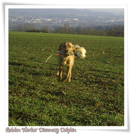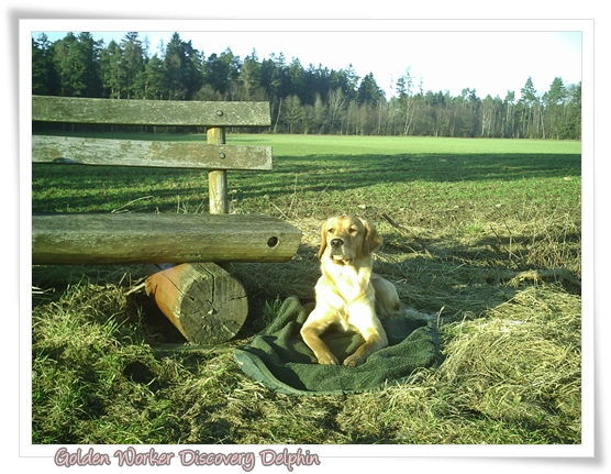 Ich gehe mit Delphin zum Punkt D1 und lege das Dummy aus. Frei bei Fuß gehts zurück zum Startpunkt. Ich weise sie ein, unterbreche und bringe sie in die Wartezone.