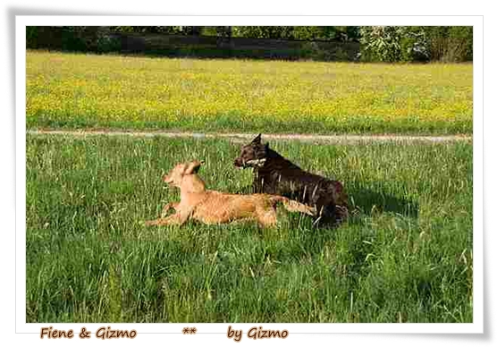 Aus dem Auto raus gings noch ein Stück an der Leine und nach ein paar Metern kam das erlösende „Lauf“! Fiene lief zu Gizmo … und stoppt plötzlich. Sie fremdelte und lief vor ihm weg…. Ich habe da so meine Vermutung. Das ist