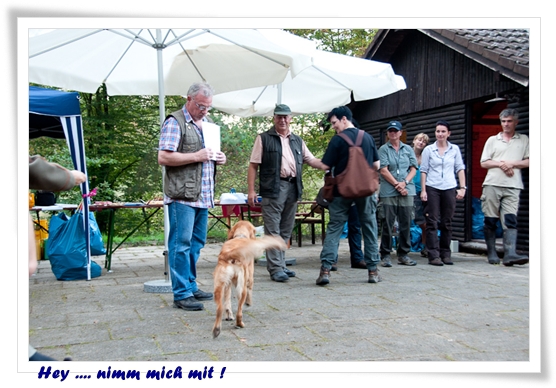 - Das Team steht an am Ufer es fällt ein Schuß und eine Wassermarkierung die für den Hund gut zu sehen ist. nach Freigabe durch die Richterin Frau Eberhardt darf geschickt werden.
