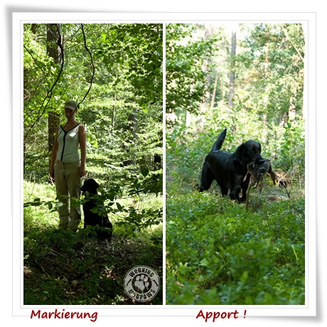 Im Juli veränderte sich unsere Sicht der Dinge auf das Apportieren. Die Vorbereitungsseminare für die JP/R gingen los. Zuerst mit etwas Argwohn von beiden Seiten beäugt wurde die Arbeit mit den toten Tieren schnell das Highlight. Es ist schon eigenartig, wie schnell ich mich an den Umgang mit Schleppwild gewöhnt habe. Und Fiene, nachdem sie die erste Hürde genommen hatte, bestärkt mich darin, dass diese Hunde genau dafür geboren wurden… Sie strahlen vor Stolz, wenn sie mit „ihrer Beute“ zurückkommen.