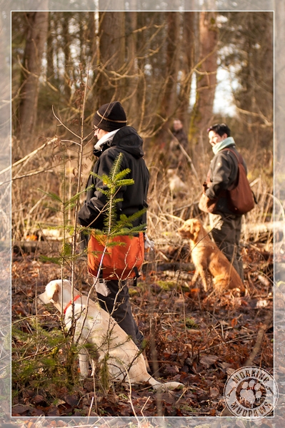 Ich bin zufrieden. Jetzt werden wir uns nochmal intensiv mit den Basics beschäftigen. Fußarbeit, Suchenpfiff und beim nächsten Training Markierungen mit Helferbewegung bzw. beschossenen Blinds.
