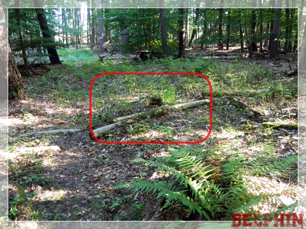 Als Fiene auf dem Rückweg war wurde D3 ausgelegt. Ich wollte, dass dieses Dummy etwas tiefer im Gelände liegt, damit ich sie über die Fallstelle der Markierung schicken musste. Außerdem verlegten wir in diesem Durchgang den Startpunkt von P1 auf P2. Bevor ich sie auf D3 schickte drehten wir uns und ich warf das Dummy, welches sie mir gebracht hatte hinter uns. (D2)