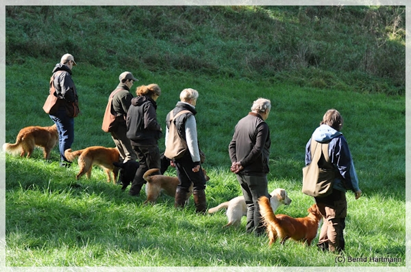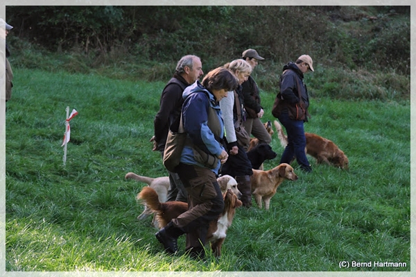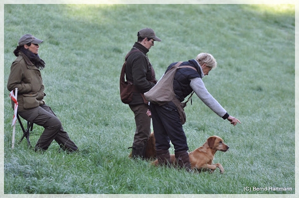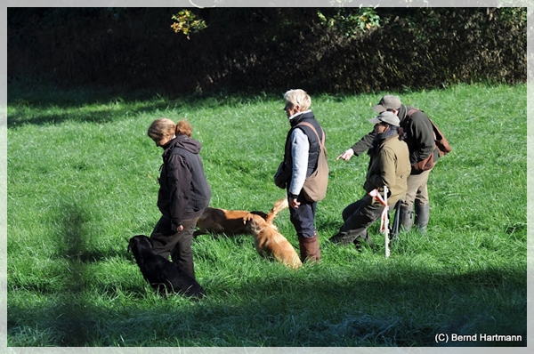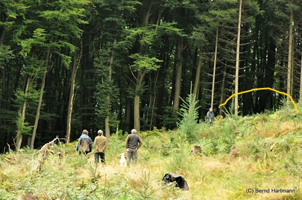 Markierungen vor und hinter die Line, Voran in das Suchengebiet wo irgendwann mal ein Treiben stattgefunden hatten…. Schon bei ihrem ersten Mark sah ich, dass Fienes Akku entladen war. Sie suchte und suchte und ich Depp hatte die Fallstelle nicht auf dem Schirm und konnt ihr nicht helfen *selberohrfeig* Als ich sie dann in das Suchengebiet schicken wollte, machte sie zu. Geli verhalf ihr dann zum Erfolg und wir gingen aus der Line um den anderen noch bis zum Schluß zuzuschauen.