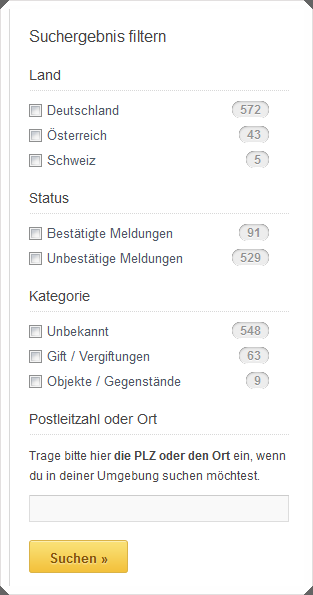 Nun gibt es neues zu berichten. Die Webseite wurde mit einer neuen Filterfunktion ausgestattet. Nun kann man ganz gezielt die Umgebung „scannen“.