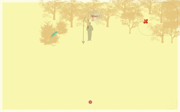 Das Team steht an einem Abhang. Es fällt ein Schuß und hinter eine dicke Kiefer fällt eine Markierung. Danach sollte der Hund in ein Suchengebiet eingewiesen werden.