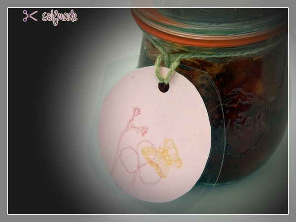 Daher muss eine Beschriftung her. Da ich Aufkleber auf Gläsern und Deckeln wirklich hasse wie die Pest – schließlich muss man die später wieder alle abknibbeln – hätte ich gerne Anhänger.