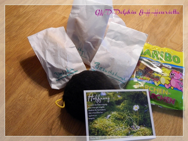Für jeden was dabei. Selbst an Fiene 2 unseren Besuchshund hat Sybille gedacht. Da die aber jetzt wieder bei ihrer Familie ist, werden wir den Inhalt gerecht aufteilen.