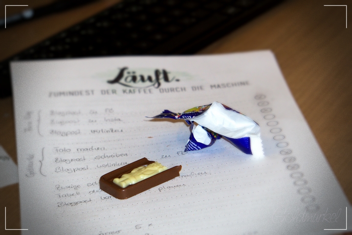 Na, dass sollte in diesen Zeiten ja wirklich sehr einfach sein und so habe ich heute Morgen beim Schreibseln gleich genussvoll das Stückchen Schocki verputzt.