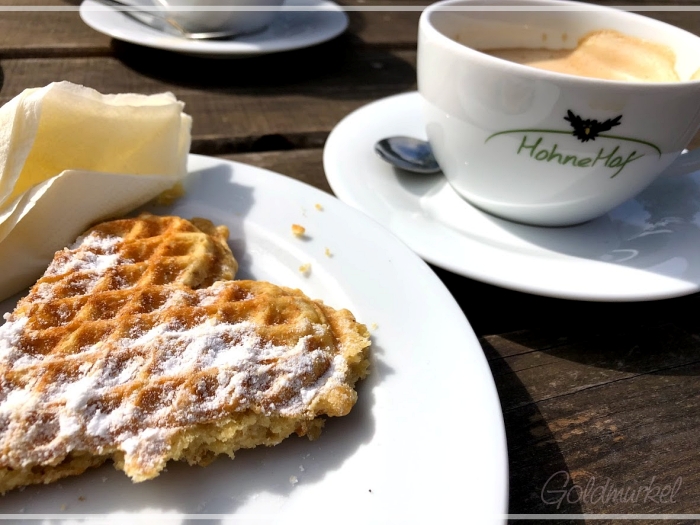 Hach was sehne ich mich nach Wandern im Harz und einer leckeren Waffel auf dem Hohne Hof. Nach ein paar Kilometern Fußmarsch kann man die Köstlichkeit wirklich „ohne Reue“ genießen.