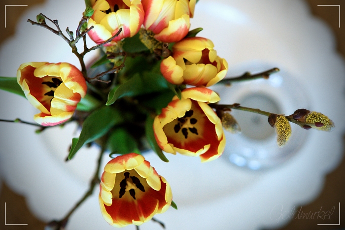 Die übrigen Tulpen und Zweige habe ich in ein kleines Sträußchen gebunden…