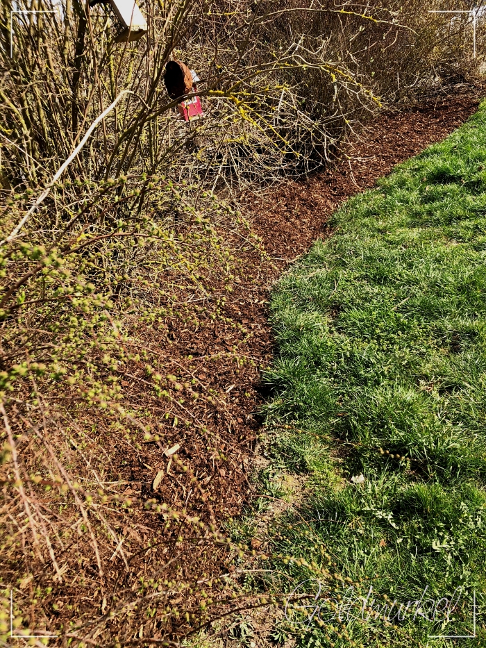 Die Rasenkante war fix abgestochen und mit Mulch sieht es bei der Hecke auch gleich viel besser aus.