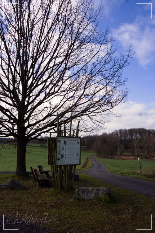 Eine große Infotafel klärt auf über die Tier- und Pflanzenwelt und einige Bänke laden ein, dort eine Pause zu machen.