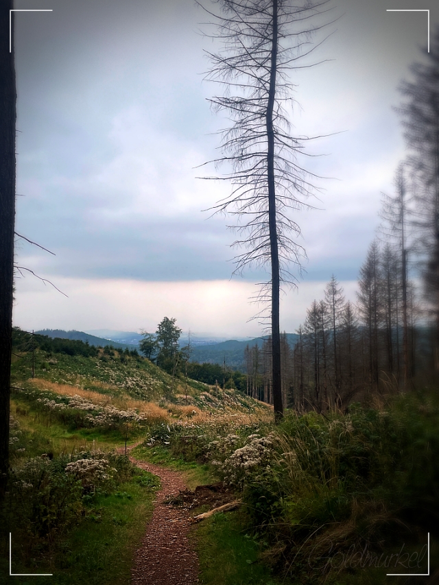 Um den Stempelkasten zu erreichen, ging es erst einmal 4 km bergauf und das nicht gerade zimperlich. Es gibt da schon so Momente, in denen ich mich frage, ob ich dieses Hobby wirklich toll finde und gelegentlich fluche ich wie ein Kesselflicker, wenn ich die Serpentinen hochschnaufe. Aber immer wieder belohnt der Harz einen mit tollen Ausblicken.