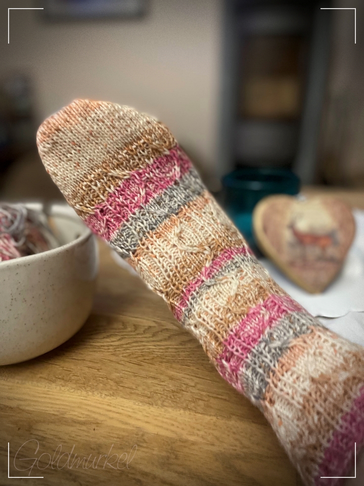 Mein „Socktober 2021“ – Socken Nr. 1 fertig und der zweite ist angenadelt.