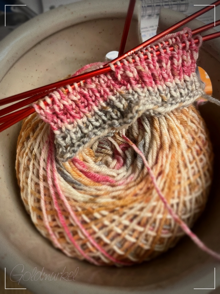 Den Pulli habe ich gefrustet in seiner Projekttasche gelassen. Es nervt mich einfach kolossal, dass ich anscheinend zu doof bin ein Perlmuster mit Raglanzunahmen zu stricken.