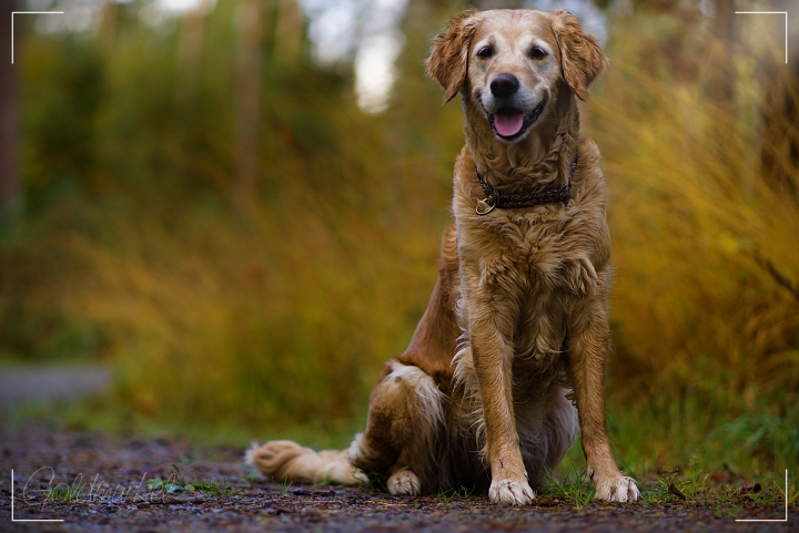 - Den Kontrast auf dem Hundekörper verstärkt und eine Vignettierung auf das Bild gelegt. (dunkle Ränder)