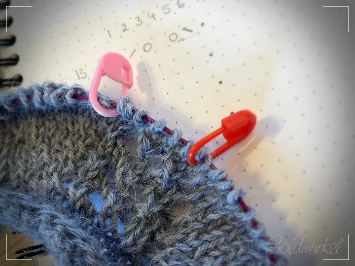 Die Zunahme ist aufwendiger zu stricken, aber dennoch fällt es mir viel leichter als bei der Anleitung mit dem Perlmuster. Ich finde einfach nicht meinen Denkfehler, warum das nicht geklappt hat. Wenn ich wieder in Bad Lauterberg bin, werde ich einfach mal meine Lieblings-Wolldealerin fragen. Vielleicht kann sie Licht ins Strickdunkel bringen.