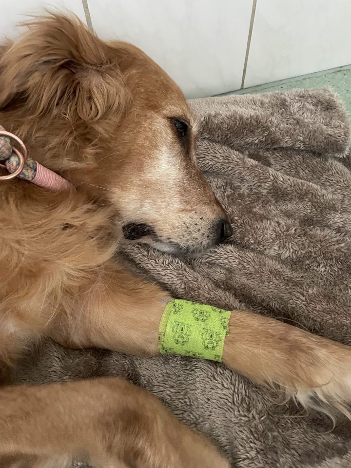 Das Bild ist kurz nach der OP…. am Nachmittag hüpfte sie schon wieder durch den Garten und heute hat sie schon wieder Dummys gerettet.