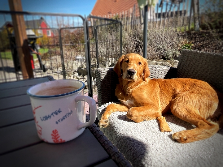 Natürlich gäbe es noch viel mehr zu tun. Im Haus und auch im Garten findet Frau ja schließlich immer irgendwas, aber der Wecker erinnerte mich an meine Lesepause und so schnappte ich mir einen Tee und das Buch. Nach gut 20 Minuten dachte ich dann, dass ich den Plausch ja auch im Garten schreiben kann und nur später am Rechner noch die Bilder einfüge. Gedacht …. getan.
