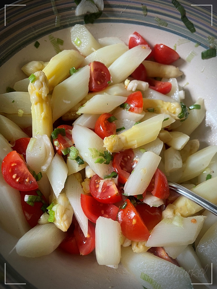 Statt Spargeltarte gab es Spargelsalat und einen Rhabarberkuchen … und Wilhelmina …. wer bitte ist denn Wilhelmina???