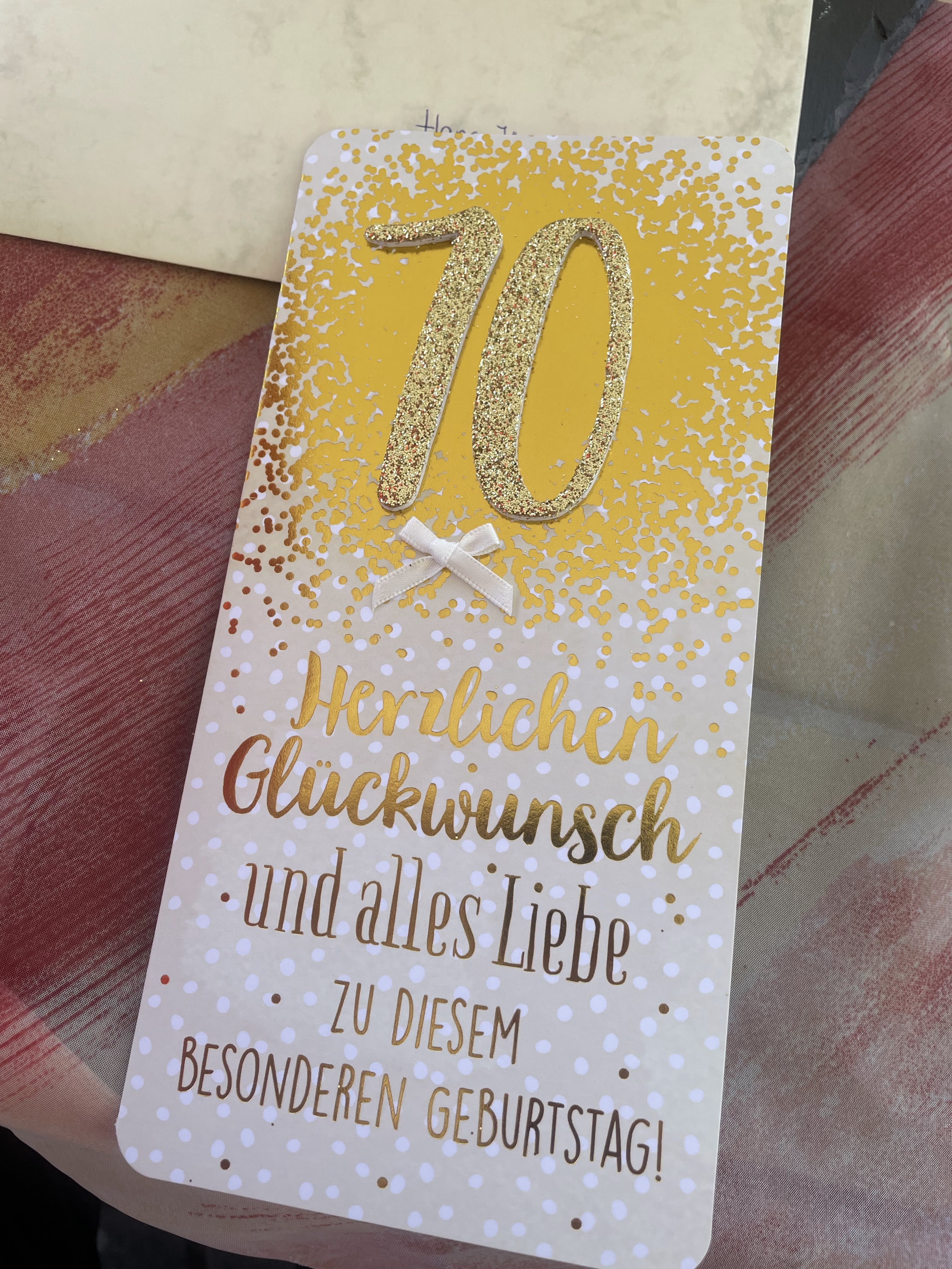 Ach, war das ein schöner Abend. Meine Schwester hatte einen Tisch reservierten, den Gutschein bestellt und diesen an mich weitergeleitet, mein Bruder hat den Fahrdienst für die Eltern übernommen, die von der kleinen, geplanten Feier nichts wussten und ich habe das Geschenk ausgedruckt, nett verpackt, eine Karte und ein Blumengesteck besorgt.