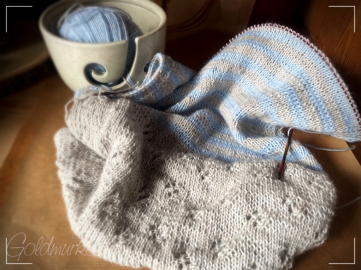 Neues habe ich nicht angenadelt, aber Wolle für ein nächstes Projekt habe ich bestellt. Es wird wieder ein Tuch und ich freue mich schon es anzustricken. Dank der lieben Rike, die mir Beispielfotos über Insta geschickt hat, habe ich meine Farbwahl getroffen und warte jetzt auf die Ankunft meiner Order.