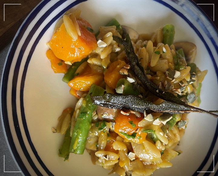 Orzotto mit Hokkaido und Pilzen, Bulgursalat mit Schweinefiletspitzen, Maxi-Tortellini mit Pilzfüllung in Spinatrahm, Fischstäbchen mit Kartoffeln und Spinat und Linsensuppe ….. hmmmmmm und natürlich dies Pinsa mit Ceasar Salad….. köstlich ♥