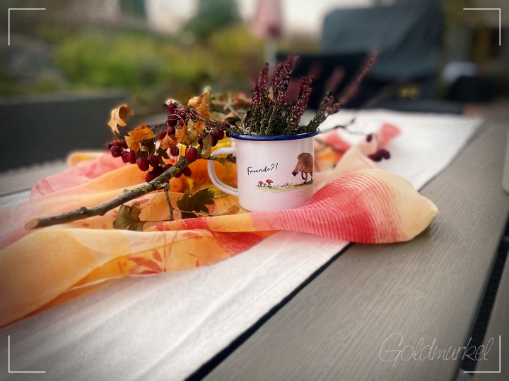 Ist das zu fassen? 21° hatten wir hier gestern und auch für heute ist bombastisches Wetter gemeldet. Da schlagen wir den Energiekonzernen ja ein richtiges Schnippchen. Heizen brauchen wir hier wirklich noch nicht. Da lohnte es sich richtig, die Sitzkissen nochmal rauszuholen und ein bisschen Deko auf den Tisch zu stellen.