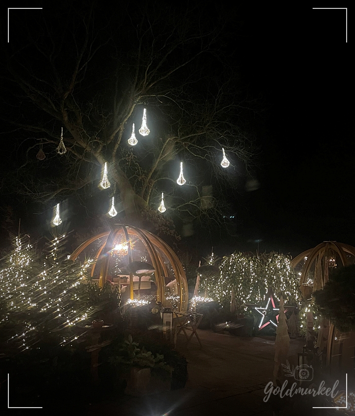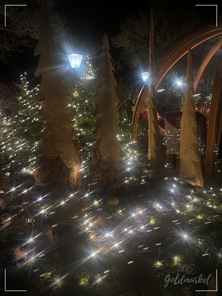 Sieht dieser „Garten“ nicht einfach wunderbar aus? In jedem Iglu haben 8 Personen Platz. Sie sind gemütlich eingerichtet und beheizt und nur eins hätte den Abend stimmungsvoller machen können. Ein bisschen Schnee, der sich über diese wundervolle Lichterlandschaft legt. Wir hatten einen tollen Abend mit wunderbarem Essen und haben viel gelacht. Die Fahrerei hat sich definitiv gelohnt.