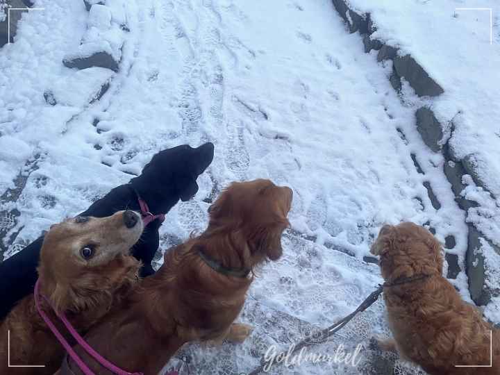 Tja, und jetzt haben wir gerade vierbeinigen Besuch. Die Hündin meiner Freundin verbringt ein paar Tage bei uns und es klappt wirklich gut mit allen vieren.