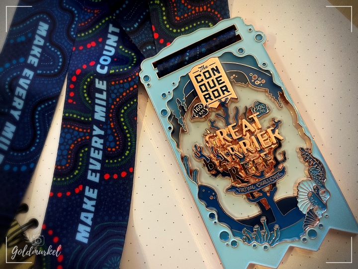 Das besondere Ereignis kam diese Woche mit der Post. Mit großer Vorfreude riss ich den Brief von The Conqueror Challenges auf. Meine Medaille, endlich! Tja, ihr könnt euch mein langes Gesicht sicher vorstellen, als anstatt der erhofften Cotswold Way Medaille eine vom Great Barrier Reef zum Vorschein kam. Innerhalb von 15 Minuten hatte ich den Support angeschrieben und mein Problem geschildert, darauf eine Antwort bekommen und die Nachricht, dass sie sofort die richtige Medaille losschicken würden. Die erhaltene dürfe ich behalten und es folgte eine lange Entschuldigung.