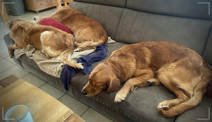 Am Sonntag hatte ich nach dem Training noch Besuch von einem Freund, dessen Flatcoated Retriever Rüde demnächst einen Tag gesittet werden muss. Bevor ich definitiv zusagen kann, müssen die Hunde sich natürlich erst einmal kennenlernen. Hetty kann mit vielen Hunden, aber eben nicht mit jedem und da nun wieder ein intakter Rüde im Haus ist, gilt es auch zu überprüfen, wie Mac mit dem älteren Hundemann zurechtkommt. Es kam, wie ich es erwartet und auch erhofft habe, Hetty erklärte zuerst Snö, wer hier der Chef ist. In der zweiten Runde bekam Mac seine Lektion, wie man sich angemessen einem älteren Rüden nähert (und er musste das nur einmal erklären). Ganz zum Schluss gingen wir dann eine Runde mit allen drei Hunden und ich war mehr als zufrieden. Wir konnten ins Haus gehen. Auch dort funktionierte es gut. Immer wieder stelle ich fest, dass meine Hunde gute „Gastgeber“ sind. Sie legen sich ab, kommen zur Ruhe, obwohl der Gast noch sehr unruhig ist. Der Snö kann also kommen.
