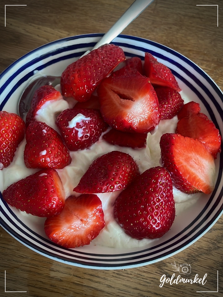 Frischen Salat, Erdbeeren mit Skyr, und ein großartiges Essen in unserem Lieblingslokal an unserem Jahrestag.