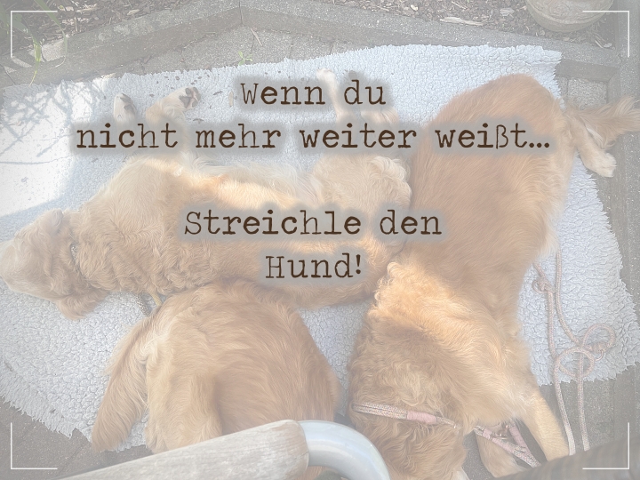 1. Hui, liebe Ivonne, da hast Du aber gut aufgepasst ;o) Bei Deinem Hundespruch diese Woche wollte ich in Gedanken schon ergänzen: Wenn Du mal nicht weiterweißt, gründe einen Arbeitskreis. Aber Deine Fortführung des Satzes ist viiieeel schöner!