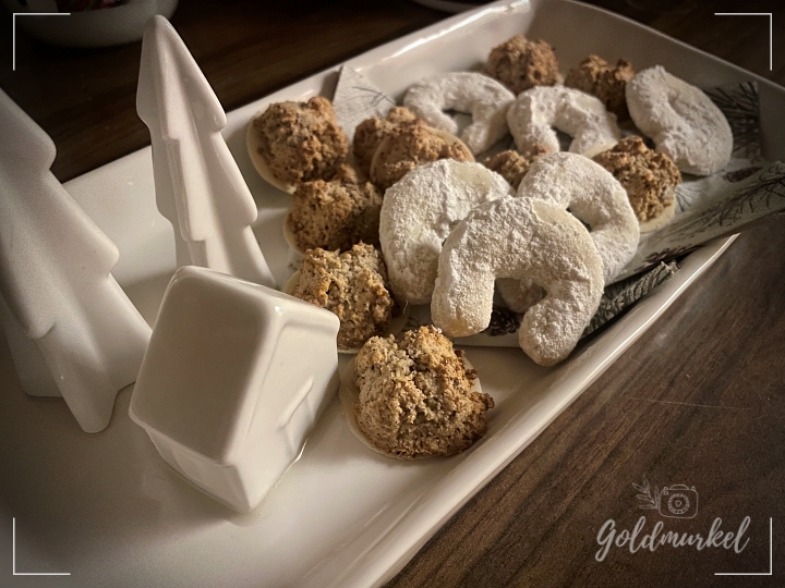 Den Tag habe ich mit backen verbracht. Haselnussmakronen und Vanillekipferl sind in die Keksdosen gewandert. Für morgen ist schon der Teig für das große Backen mit den Nichten vorbereitet. Darauf freue ich mich schon sehr.