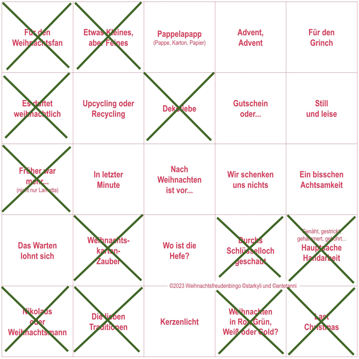 Und voller Stolz und mit einem Grinsen im Gesicht mache ich mein Kreuz auf dem Bingo Feld.