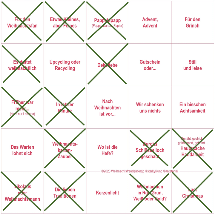 Bingo… Ich bin sicher, da geht noch was, nach Weihnachten ist vor… den Bingo-Kreuzchen. 😉