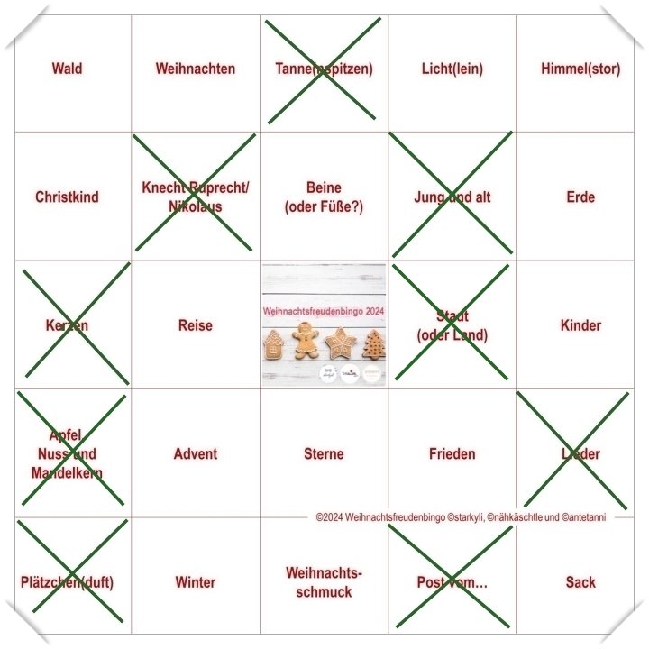 Danke, Starky, Anni und Ingrid für diese schöne Weihnachtsaktion. Jetzt fällt es zunehmend schwerer, die Felder abzuhaken.
