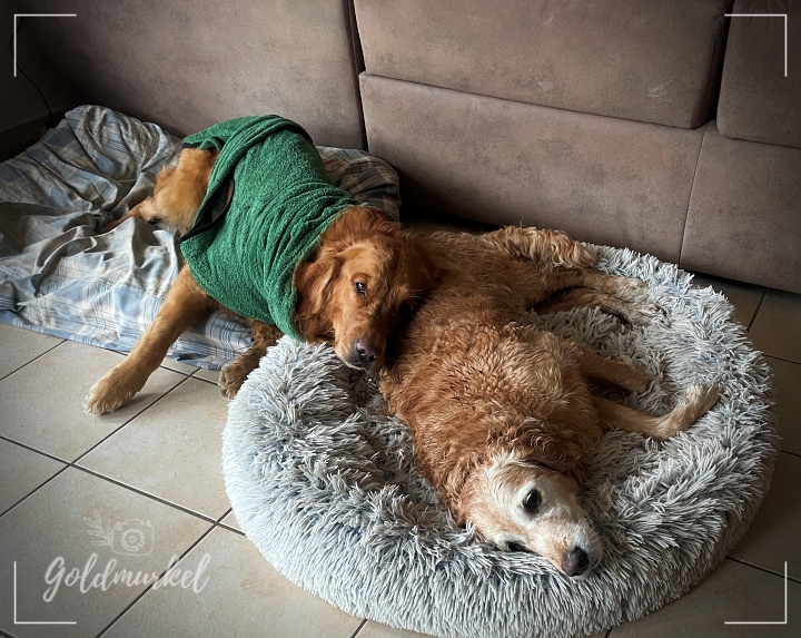 Hetty hat immer mal kurz Probleme mit dem Rücken. Nichts worüber man sich Sorgen machen müsste, es ist einfach der Zahn der Zeit. In 6 Wochen wird sie elf und sie ist einfach kein bisschen langsamer.