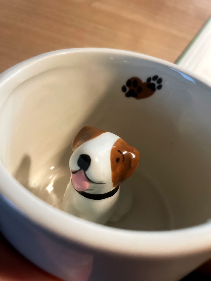 Obwohl ich keinen Geburtstag hatte, haben mir meine Nichten ein Mitbringsel überreicht. Ich durfte mich über ein Glas Marmelade von Karls Erdbeerhof und diese niedliche Tasse freuen.