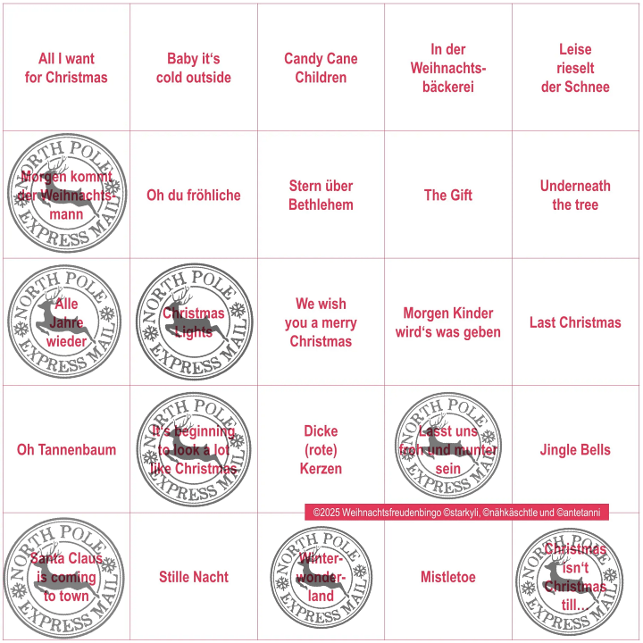 Danke, Starky, Anni und Ingrid, für das diesjährige Weihnachtsfreudenbingo.