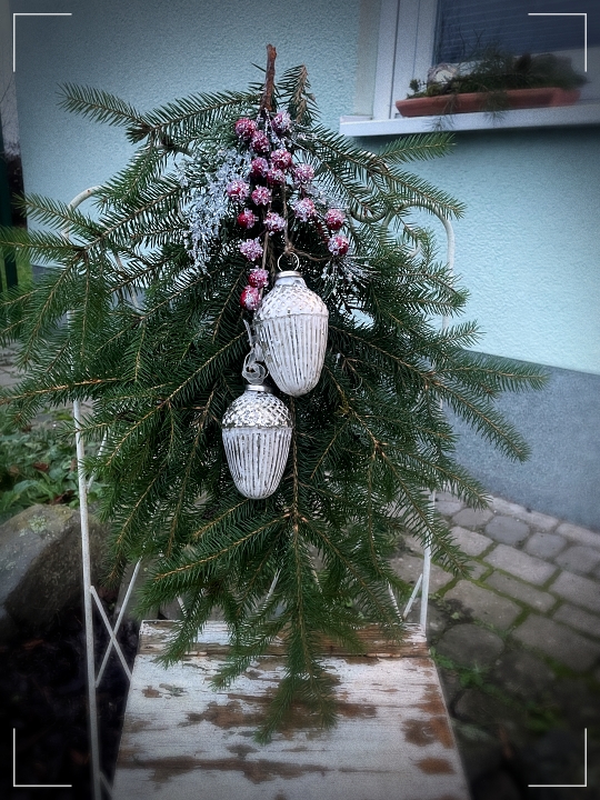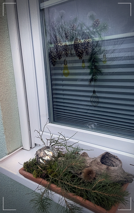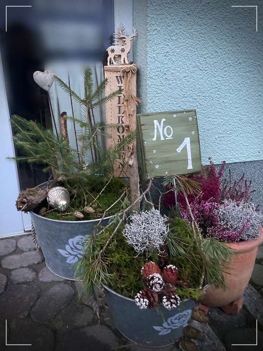 Hier wird fleißig weiter geschmückt und dekoriert. Heute waren die Blumentöpfe vor dem Haus dran. Leider ist ein Untersetzer für die zweite Fensterbank kaputtgegangen. Jetzt muss ich nochmal in den Baumarkt düsen und Abhilfe schaffen.