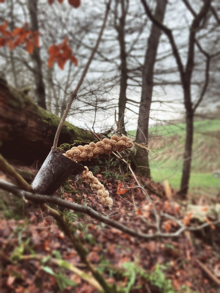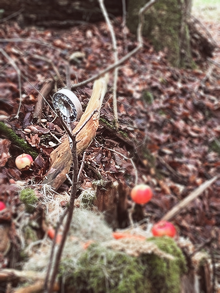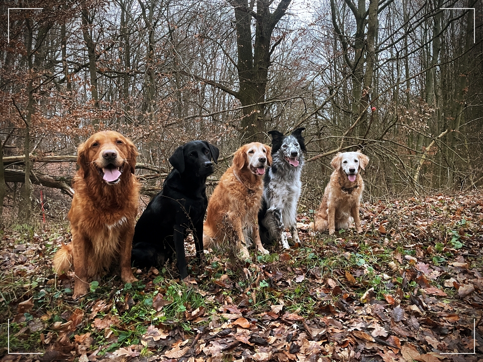 Wie jedes Jahr begleitet mich meine Freundin und wir nutzen den gemeinsamen Spaziergang, um auch unsere Bescherung zu feiern. Die Übergabe unserer Geschenke im Wald hat auch schon Tradition. Natürlich begleiten uns auch die Hunde.