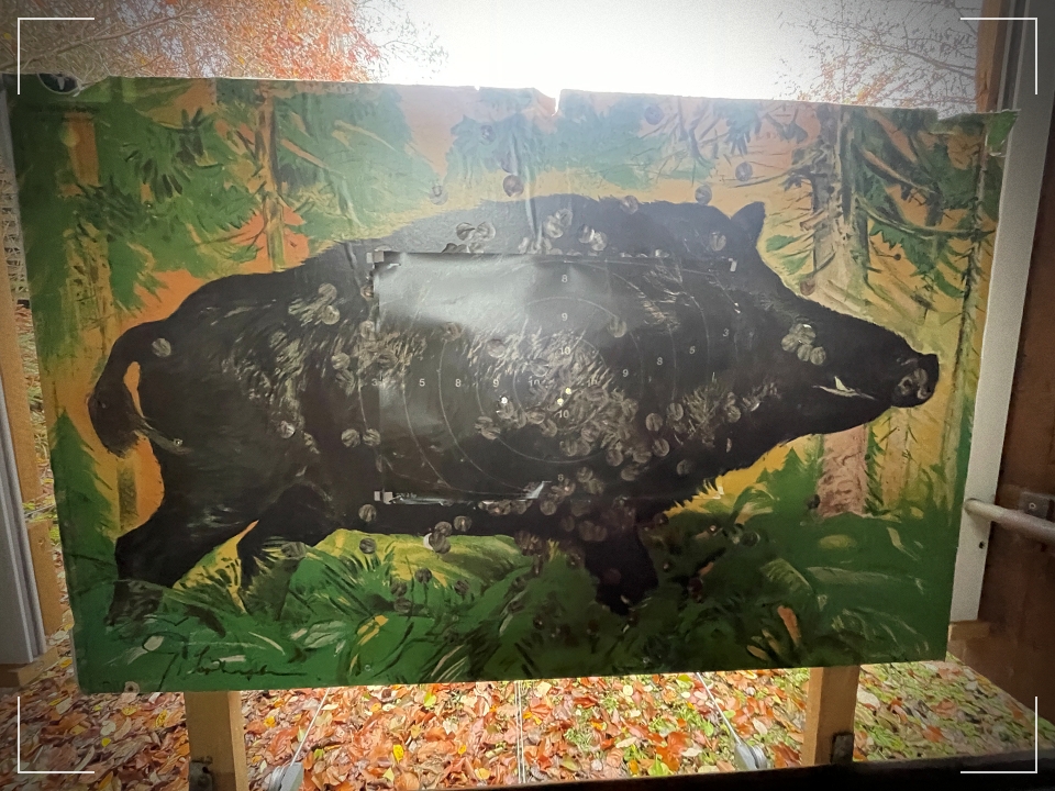Nach einigen Erklärungen, kleinen Veränderungen und einigen Versuchen war er zufrieden und gab mir den Arbeitsauftrag den Ablauf zu Hause zu üben. Das habe ich getan und beim letzten Schießen habe ich mit jedem Schuss diesen…. entschuldigt bitte …. Dreckshasen getroffen.