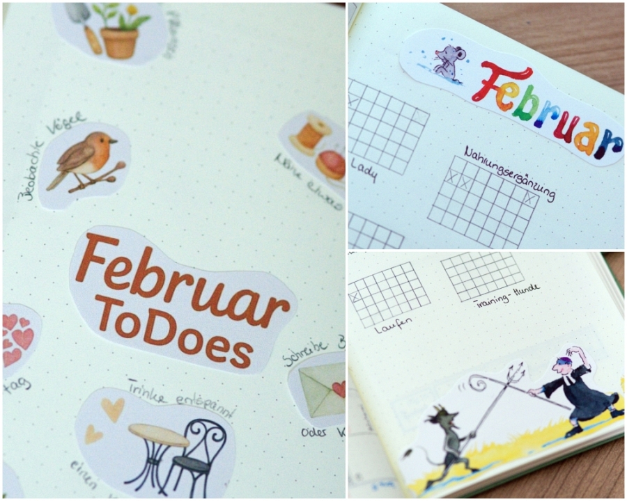 Auf der Bucket-List im Bullet Journal stehen Dinge wie: „Beobachte Vögel“, „Schreib einen Brief / Karte“, „Mache Fotos von Blumen“ oder „Feiere Valentinstag“.