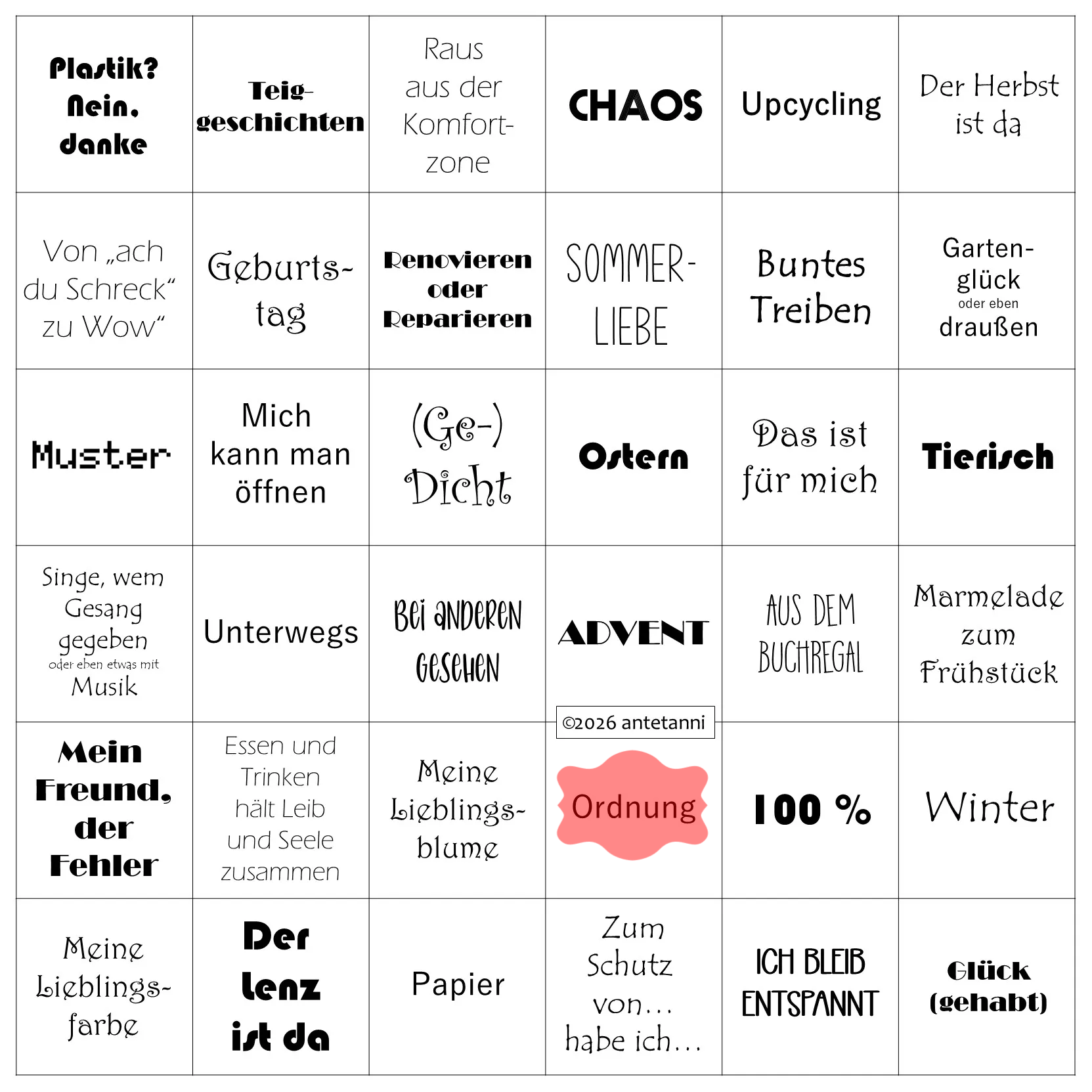Und weil es in diesem Artikel um Ordnung geht, mache ich einen Stempel auf der Bingo Karte von Anni