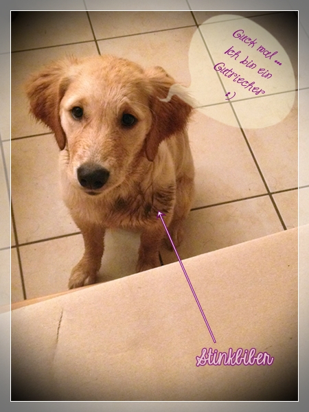Für dieses Gruppenfoto haben wir Fiene 2 mal kurz angeleint. Sie ist es einfach nicht gewohnt so dicht neben einem anderen Hund zu sitzen und praktiziert Fotobombing nach dem Motto … „Ich bin dann mal weg!“