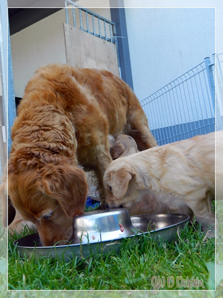 Sie fressen wie die Raupen und ich kann verstehen, dass Chero versucht sich dieser Bande von kleinen Vampiren zu entziehen. Habe ich eine Favoritin – nein… nicht wirklich… vielleicht aber doch so 2 – 3 haben es mir besonders angetan aber ich bin sicher, dass Angelika auch diesmal wieder den richtigen Welpen für mich finden wird.