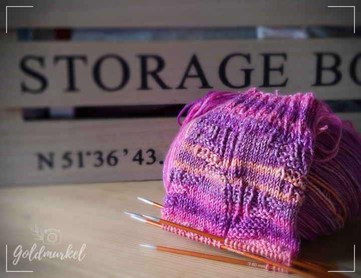 Und weil ich das Muster aus dem Socktober des letzten Jahres unbedingt stricken möchte, habe ich sie mit einer anderen Wolle nochmal angenadelt. Mal sehen, ob Jupp mir diesmal gestattet, dass ich ein neues Paar Socken bekomme.